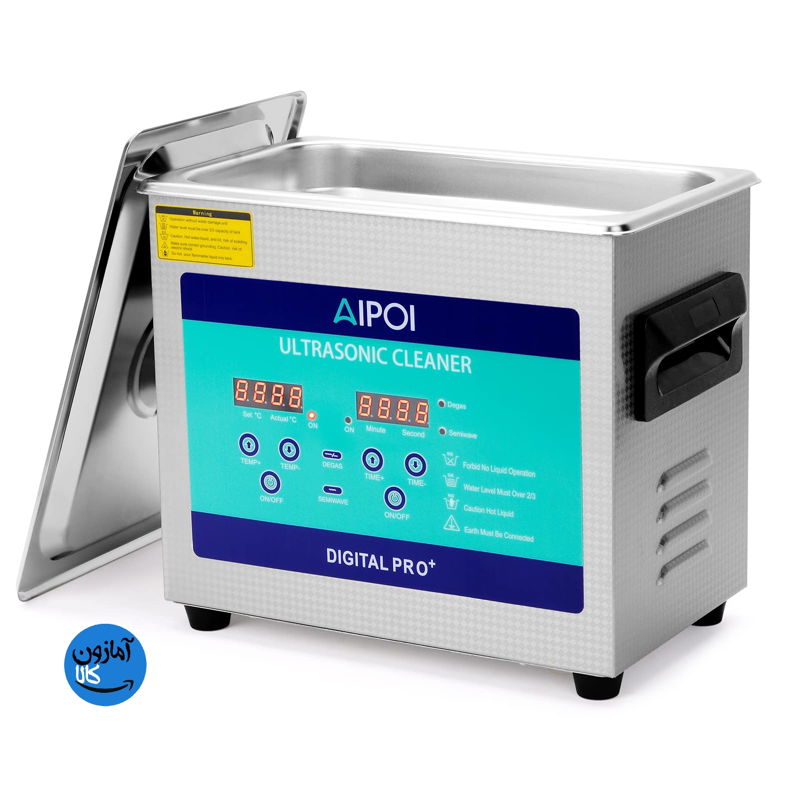 دستگاه پاک کننده جواهرات اولتراسونیک ۳/۲ لیتری برند AIPOl،جنس استیل ضد زنگ با تایمر و بخاری