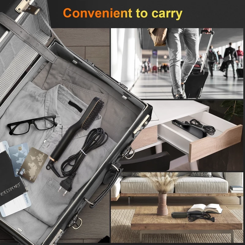 ✅️ طراحی ارگونومیک: طراحی قوس شانه دندان بر اساس خطوط گونه و سر انسان است که می تواند به خوبی با ریش و مو سازگار شود. صاف کننده مناسب برای انواع مدل های مردانه، موهای کرکی، صاف، مراقبت از ریش، موهای صاف زنانه و .... برس ریش کوچک و قابل حمل نیز برای حالت دادن به ریش در مسافرت قابل استفاده است.