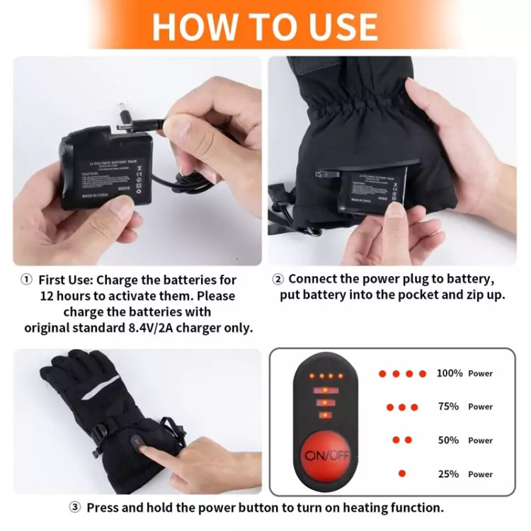 🔥 【دستکشهای گرمکن یونیسکس برای مردان و زنان】 دور کف دست را اندازه بگیرید: دور دست خود را در کاملترین نقطه به استثنای انگشت شست اندازه بگیرید. توجه: لطفاً اگر انگشتان بلندتر یا کف دست ضخیم دارید، اندازه بزرگتر را انتخاب کنید. دستکش های حرارتی برقی ما با ساعات کاری طولانی می توانند دست شما را در تمام طول روز گرم نگه دارند. اگر خارج از فصل است، توصیه می کنیم آنها را با دست در آب گرم با مواد شوینده ملایم بشویید و صاف تا خشک کنید، شستشو با ماشین نیز سازگار است. لطفا قبل از شستشو باتری را خارج کنید.
