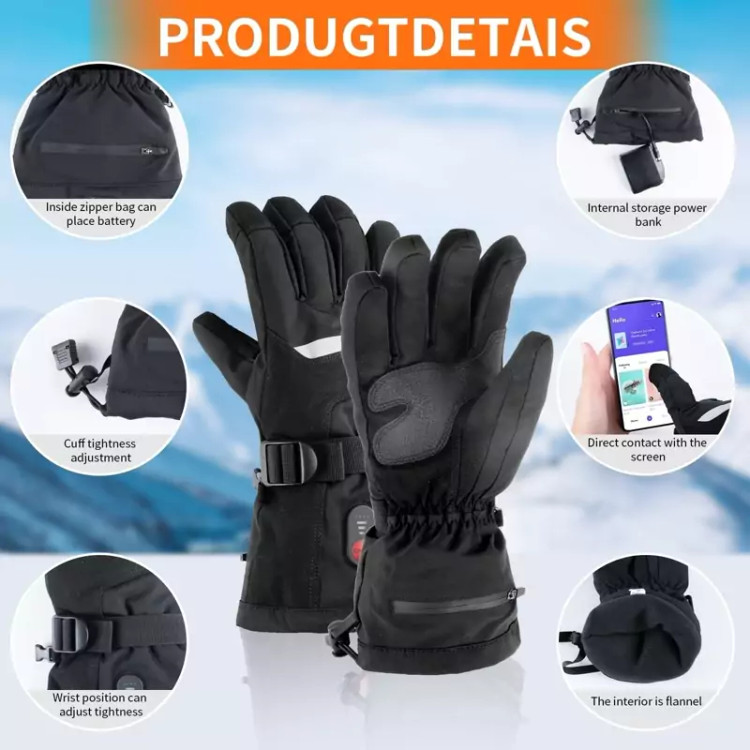 🔥 【ضد لغزش PU Palm & Touchscreen】 دستکش های گرمایشی از الیاف پلی استر با لایه بیرونی ساخته شده اند. وسط از مواد ضد آب و تنفس TPU ساخته شده است، پنبه نرم، آستر داخلی از فلانل ساخته شده است که لمس نرم و راحت را ارائه می دهد. جعبه باتری و پورت های کابل برای حمل آسان در دستکش پنهان شده اند. طراحی سگک و بند کشی قابل تنظیم می تواند به طور کامل از مچ دست محافظت کند و از ورود برف باد به داخل مچ جلوگیری کند.