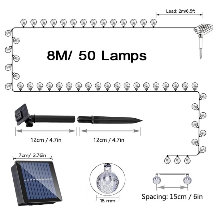 ال ای دی کریستالی خورشیدی با پنل خورشیدی 50 ال ای دی ، ضدآب