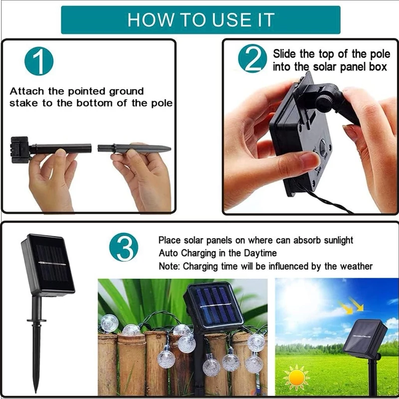ال ای دی کریستالی خورشیدی با پنل خورشیدی 50 ال ای دی ، ضدآب