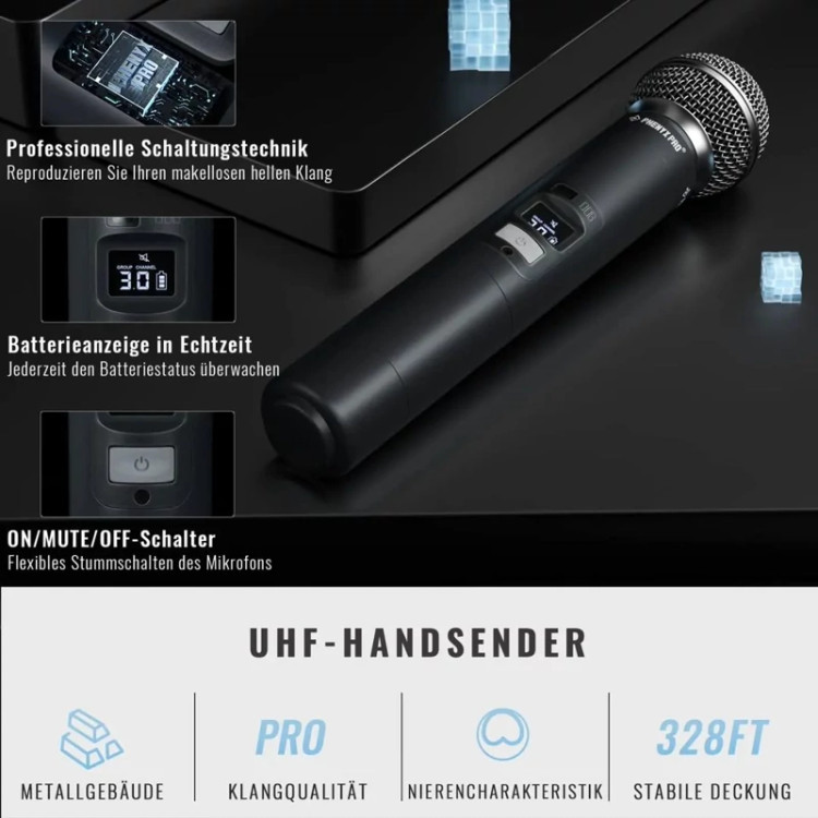 🎤 عملکرد بی سیم ممتاز: سیستم میکروفون بی سیم دوگانه UHF با فرکانس قابل انتخاب. کانال 1: 538.3-566.5 مگاهرتز (100 کانال) کانال 2: 571.3-599.5 مگاهرتز (100 کانال) همگام سازی IR بدون دردسر، جفت شدن بدون دردسر گیرنده ها و میکروفون های بی سیم را در عرض چند ثانیه، با حداقل افت فشار و حداکثر بازخورد بازخورد تضمین می کند. برد طولانی برای سیستم های میکروفون بی سیم از 290 فوت تا 328 فوت خط دید