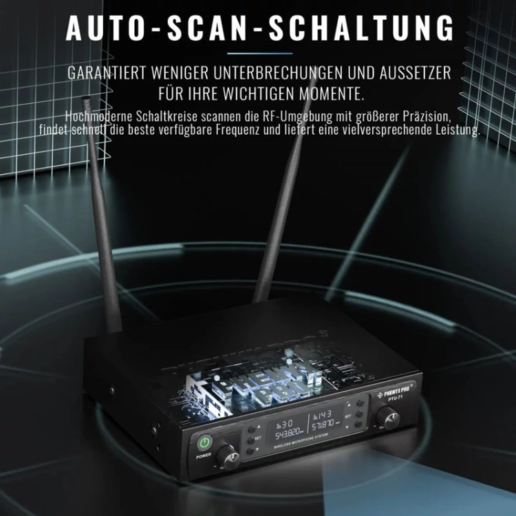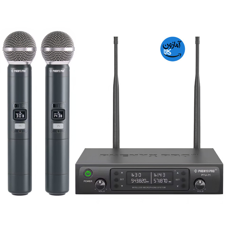 میکروفون بی سیم برند Phenyx Pro مدل PTU-71 دوگانه UHF با قابلیت اسکن خودکار
