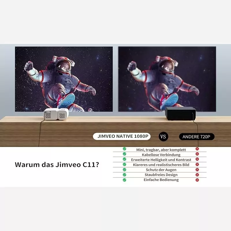 ✅️ سیستم پیچیده و منبع نور پراکنده: C11 دارای یک سیستم اپتیکال مهر و موم شده و یک دیسک محافظ گرد و غبار قابل جابجایی است که 90٪ از ورود گرد و غبار به پروژکتور جلوگیری می کند و به طور موثر لکه های سیاه را کاهش می دهد. سیستم خنک کننده پیشرفته از گرمای بیش از حد جلوگیری می کند. با جدیدترین لامپ های LED کم مصرف و فناوری نور پراکنده، می توانید از تجربه دید راحت تری نسبت به منابع نور مستقیم لذت ببرید که از چشمان شما بهتر محافظت می کند.
