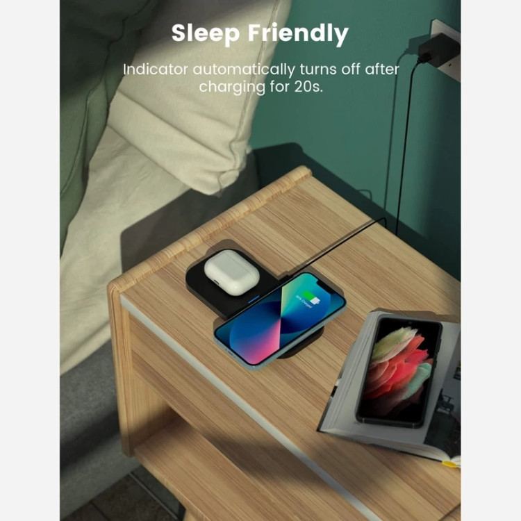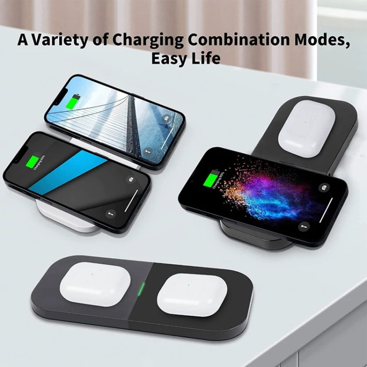 ✅️【سازگار با گوشی های هوشمند Qi/گوشی TWS】 ●سازگار با iPhone 14 Pro Max/14 Pro/14 Plus/14/13Pro Max/13por/13mini/12Pro Max/12 pro/12/12mini /iPhone11 series /iPhoneX series/Galaxy S22/S52S/Galaxy S22+S51 FE/S20 Ultra/S20+/S20/S10/S10 Plus. ●سازگار با Airpods Pro/3/2، Galaxy Bus/Bus+/ Buds Live/ Pixel Buds/TWS. (توجه: این پد شارژ فاقد قسمت شارژ ساعت است و نمیتواند برای ساعت هوشمند شارژ شود)