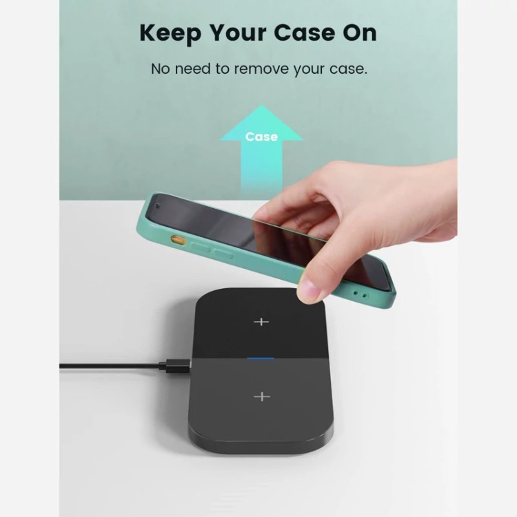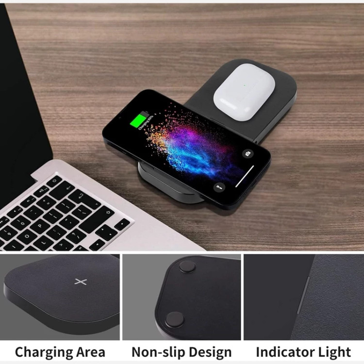 ✅️ 【شارژ بی سیم 2 در 1】این پد شارژ دارای دو موقعیت شارژ است و می تواند دو دستگاه را همزمان شارژ کند. هر دو موقعیت شارژ چپ و راست می توانند گوشی هوشمند یا ایرفون TWS را شارژ کنند. (توجه: این پد شارژ فاقد قسمت شارژ ساعت است و نمی تواند برای ساعت هوشمند شارژ شود.)