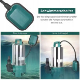 پمپ شناور ۱۱۰۰ وات، پمپ فاضلاب برای آب کثیف، حداکثر دبی ۲۰۰۰۰ لیتر بر ساعت ، بدنه استیل ضد زنگ FIXKIT 1100W