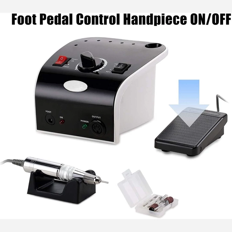 💞 ست سوهان برقی ناخن: شامل 1 دستگاه اصلی، 1 دسته، 1 عدد جا قلم، 1 پدال پا، 2 عدد تسمه سنباده و 4 مته فلزی مختلف که برای آسیاب، برش، کنده کاری، پرداخت تمام هنرهای ناخن و پاک کننده کوتیکول مناسب برای مصارف خانگی و سالنی استفاده می شود.