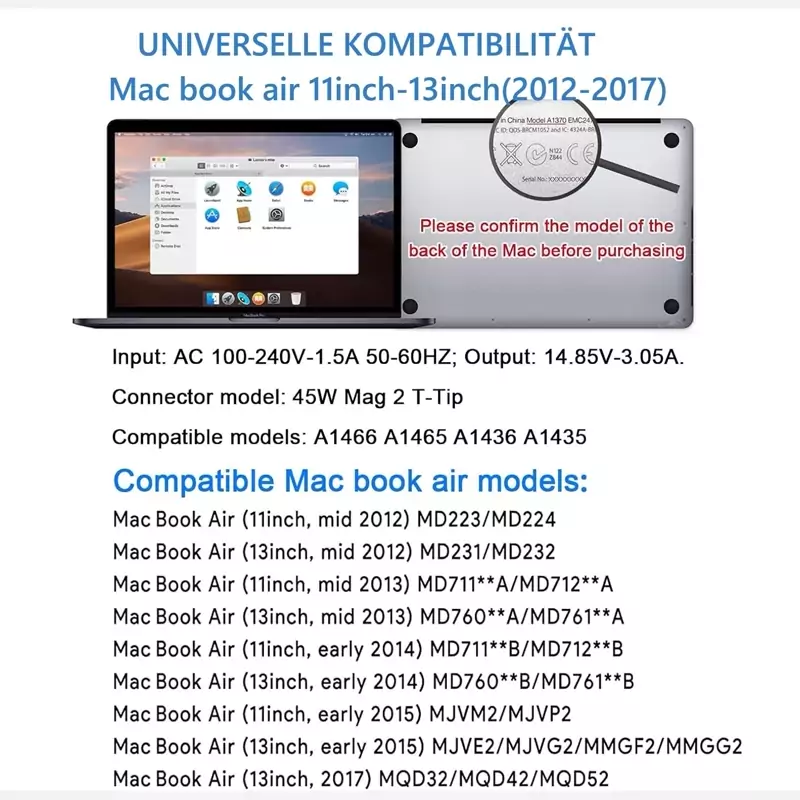 ✅️ سازگاری گسترده: کابل شارژ Mac Book Air سازگار با: Mac Book Air (13 اینچ، اواسط 2012). مک بوک ایر (11 اینچ، اواسط 2012)؛ مک بوک ایر (13 اینچ، اواسط 2013)؛ مک بوک ایر (11 اینچ، اواسط 2013)؛ مک بوک ایر (13 اینچ، اوایل 2014)؛ مک بوک ایر (11 اینچ، اوایل 2014). 14)؛ مک بوک ایر (13 اینچی، اوایل 2015)؛ مک بوک ایر (11 اینچی، اوایل 2015)؛ مک بوک ایر (13 اینچ، 2017)، مدل A1436، A1465، A1466