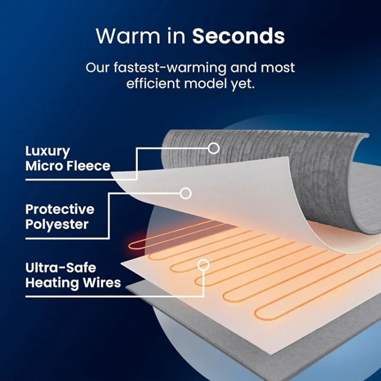 🔥 9 تنظیم گرما و تایمر تا 9 ساعت: اگر خواب خوبی داشتهاید و فراموش کردهاید پتوی گرم خود را از برق بکشید، خیالتان راحت باشد، زیرا این پتو به یک تایمر قابل برنامهریزی تا 9 ساعت مجهز است. پس از رسیدن به زمان دلخواه، پتوی گرم خاموش میشود. با 9 تنظیم قابل تنظیم، میتوانید گرما را از طریق کنترلکننده کنترل کنید تا بتوانید دمای مناسب مورد نظر خود را پیدا کنید. استفاده از آن آسان و بسیار مؤثر است و بسته به نیاز شما، سطوح مختلفی از گرما را ارائه میدهد. راحتی تمام بدن و گرمایش سریع: دیگر لازم نیست در شبهای سرد برای گرم نگه داشتن انگشتان پا تقلا کنید. پتوی گرمایشی با اندازهی سخاوتمندانهای طراحی شده است که تضمین میکند پاهای شما پوشانده شده و حتی فضای زیادی برای به اشتراک گذاشتن با دیگران دارد. پتوی گرم تمام بدن با ابعاد 130 در 180 سانتیمتر، سطحی نرم و لطیف دارد که لمس آن را نرم و آرامشبخش میکند و پارچهای 250 گرمی دارد که مطمئناً شما را گرم نگه میدارد. این پتو از نفوذ و حفظ گرما به طور کارآمد و یکنواخت برخوردار است و برای آرامش عضلات و مفاصل دردناک شما ایدهآل است.