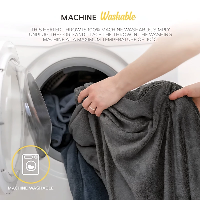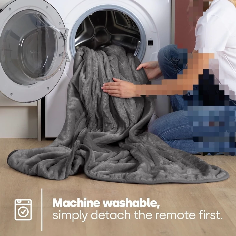 🔥 قابل شستشو با ماشین لباسشویی و مراقبت آسان: پتوی گرم برای راحتی شما قابل شستشو با ماشین لباسشویی و خشککن است. کنترل از راه دور و سیم آن کاملاً قابل جدا شدن هستند و به این پتوی گرم اجازه میدهند در دماهای سرد شسته شود. فقط قبل از شستشو حتماً کنترلها را از برق بکشید و جدا کنید. میتوانید به سرعت و به راحتی کنترلها را جدا کنید و در صورت نیاز آن را به راحتی در ماشین لباسشویی بیندازید. جدا کردن آن بسیار آسان است. میتوانید از پارچهی پشمی نرم این پتوی برقی تمیز و تازه برای سالهای آینده لذت ببرید.