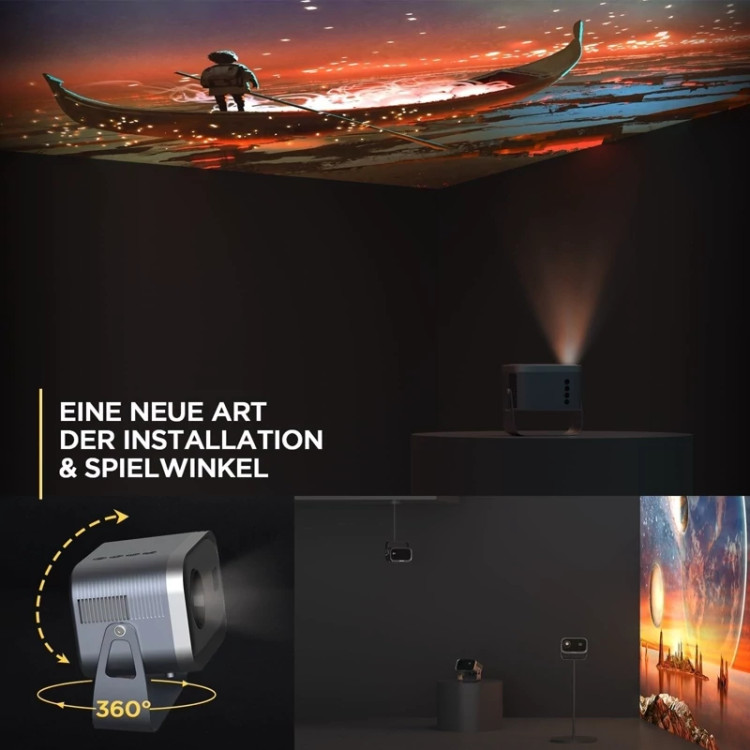 🏕 جهت نمایش قابل تنظیم 360 درجه: پروژکتور همراه به دقت طراحی شده است تا دستگاه و پایه را یکپارچه کند، بنابراین می توانید به راحتی به یک پروژکتور 360 درجه دست پیدا کنید که زوایای پخش شگفت انگیزی را به شما ارائه می دهد. با استفاده از این پروژکتور قابل حمل، می توانید از تجربه سینمای سقفی در کنار خانواده لذت ببرید، حتی زمانی که در اتاق خواب خود دراز کشیده اید.