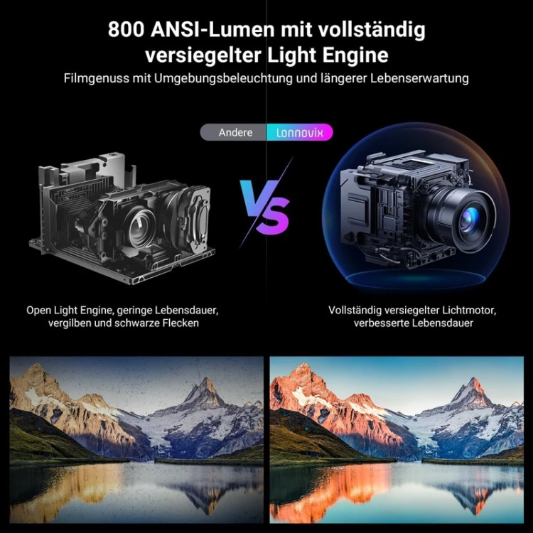 ✅️ 25000 لوکس روشنایی برتر و یکنواختی روشنایی: مجهز به لنز با نفوذ بالا با پوشش 8 لایه، صفحه نمایش LCD 4.5 اینچی و موتور نور و چیپست قدرتمند، راندمان روشنایی را 2 برابر بهبود بخشیده است، تا 800 لومن ANSI، منابع نور 25000 لوکس، مناسب برای روشنایی محیط، فیلمهای فضای باز و رویدادها.