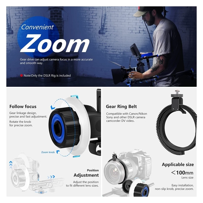✅️ کیت شامل: (1) براکت C شکل + (1) دستگیره بالای دسته + (2) میله 15 میلی متر + (1) جعبه مات + (1) فوکوس دنبال + (1) دکل شانه + (1) 2.5 پوند / 1.1 کیلوگرم وزن شمارنده