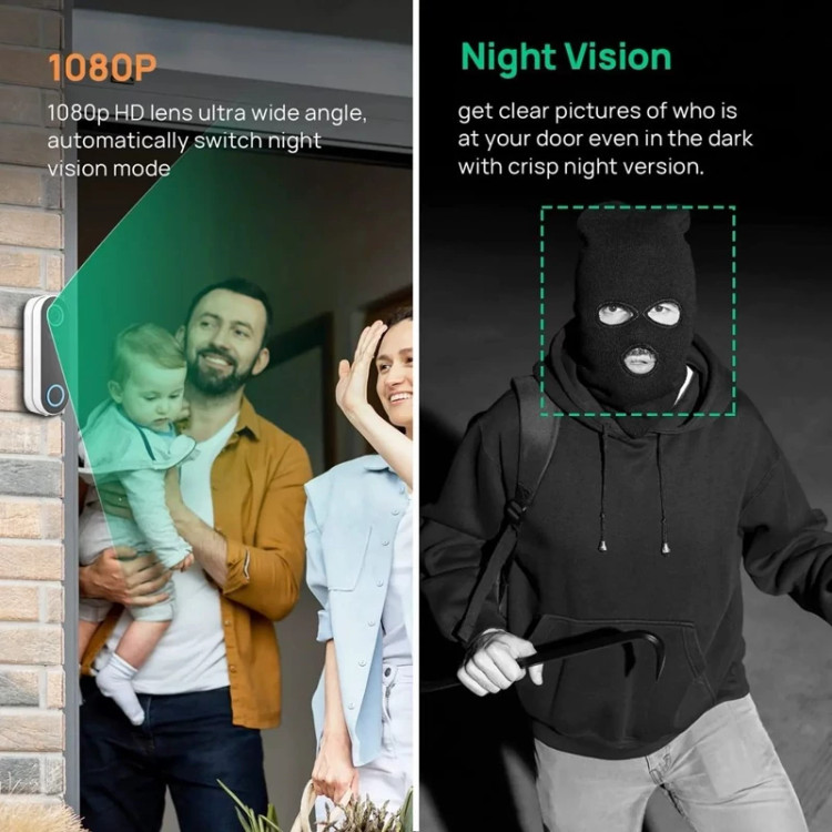 زنگ درب هوشمند امنیتی با HD 1080P، دید در شب