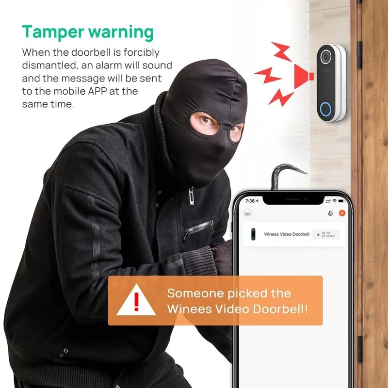 زنگ درب هوشمند امنیتی با HD 1080P، دید در شب