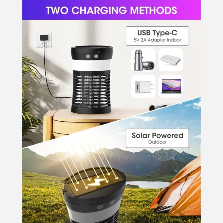🦟 شارژ با انرژی خورشیدی و USB: این چراغ دافع پشه خورشیدی دارای یک پنل خورشیدی است که می تواند انرژی خورشیدی را به انرژی الکتریکی تبدیل کرده و آن را در باتری داخلی ذخیره کند. می توانید لامپ حشره کش را در فضای باز و زیر نور خورشید یا هر جا از طریق پورت USB شارژ کنید. و می توان آن را به طور مستقل در صورت شارژ کامل بدون نیاز به اتصال مداوم به برق استفاده کرد.