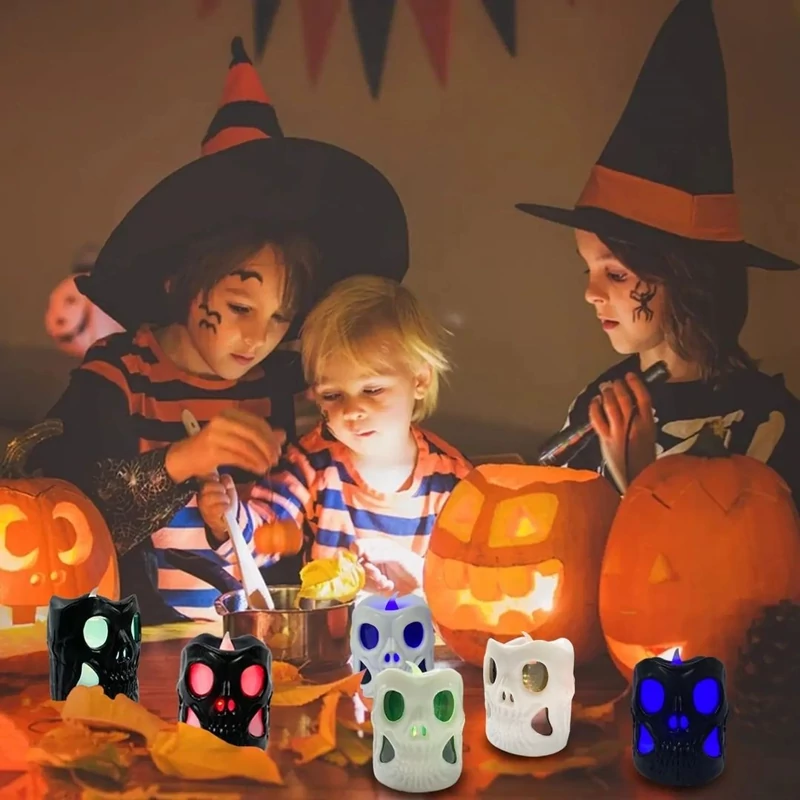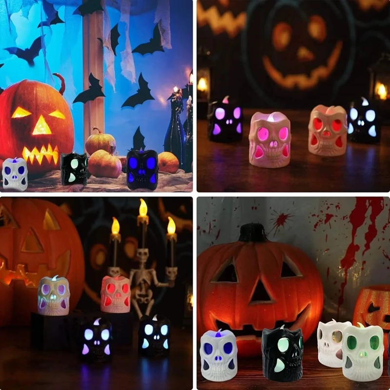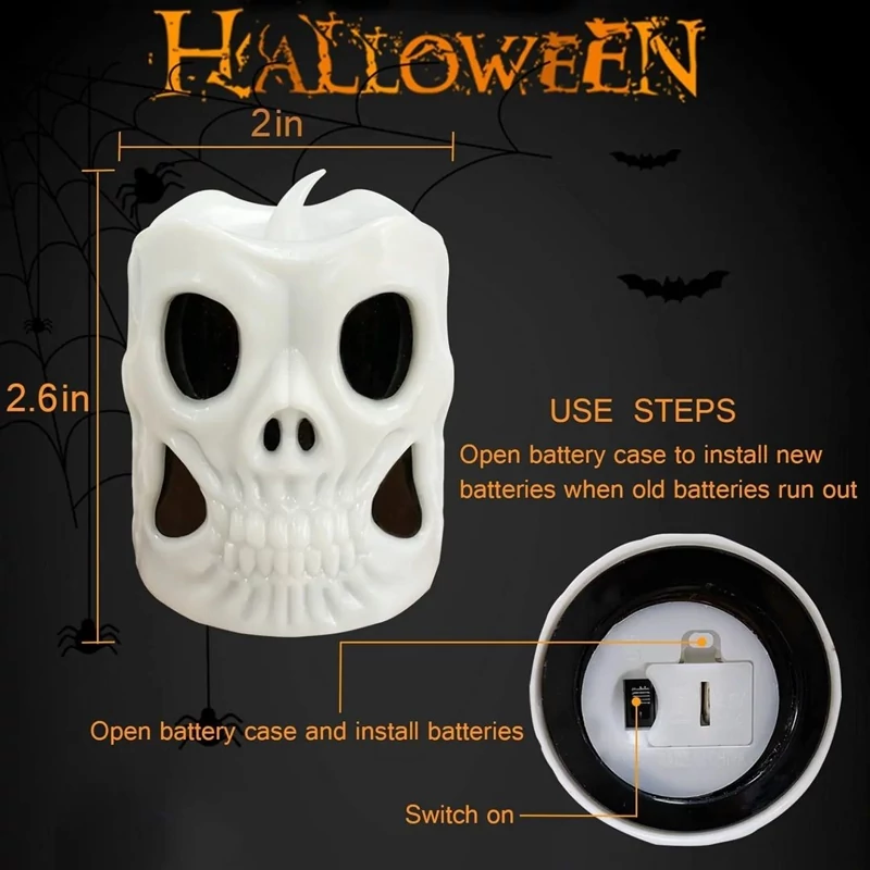 🎃شکل منحصر به فرد: نور شمع جمجمه درخشان، شکل جدید، شمع نور چای LED، می تواند به عنوان نور شب یا چراغ دکوراسیون تعطیلات استفاده شود.
