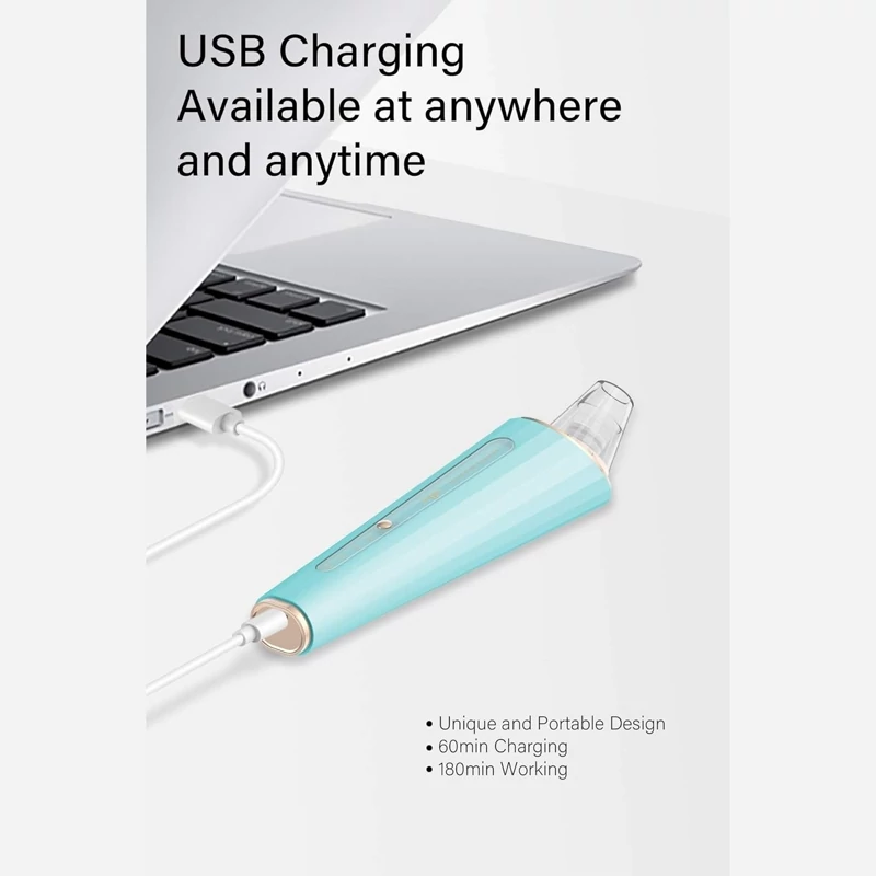 💖 【ایمن و قابل حمل】- پاک کننده جوش سر سیاه، مواد ABS، مجهز به کابل شارژ USB، شارژ به مدت 60 دقیقه، کار برای بیش از 1 ساعت. شکل آن به راحتی قابل حمل است. از مراقبت از پوست حرفه ای SPA در هر زمان و هر مکان لذت ببرید.