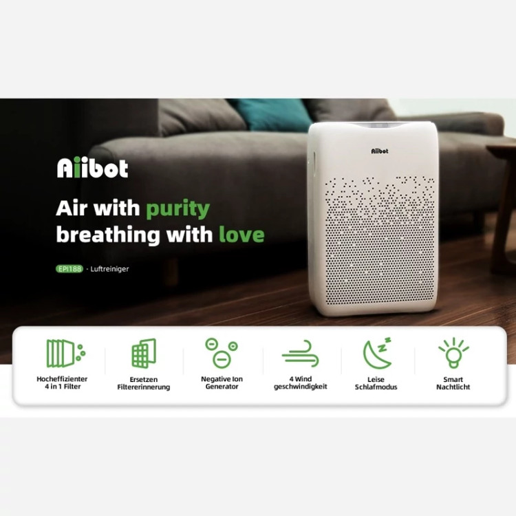 تصفیه کننده هوای Aiibot با فیلتر ترکیبی و ضدآلرژی
