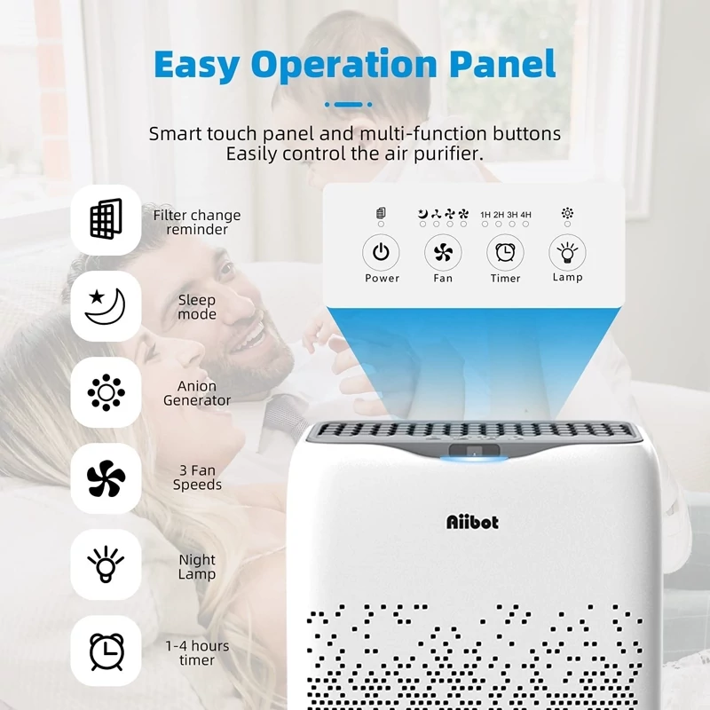 ✅️ تایمر و صرفهجویی در مصرف انرژی: عملکرد تایمر (1/2/3/4 ساعت) میتواند به ما در تنظیم زمان کار دستگاه تصفیه هوا کمک کند. میتوانید از هوای تازه در خانه و اتاق خواب لذت ببرید.