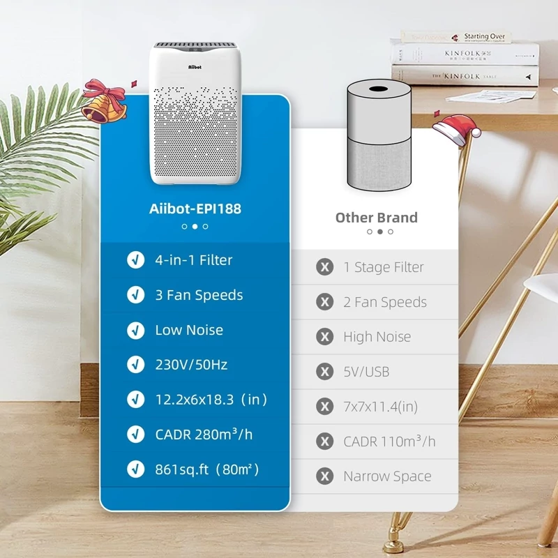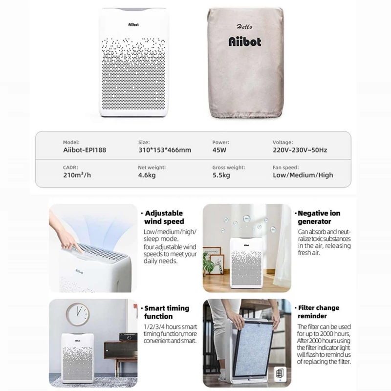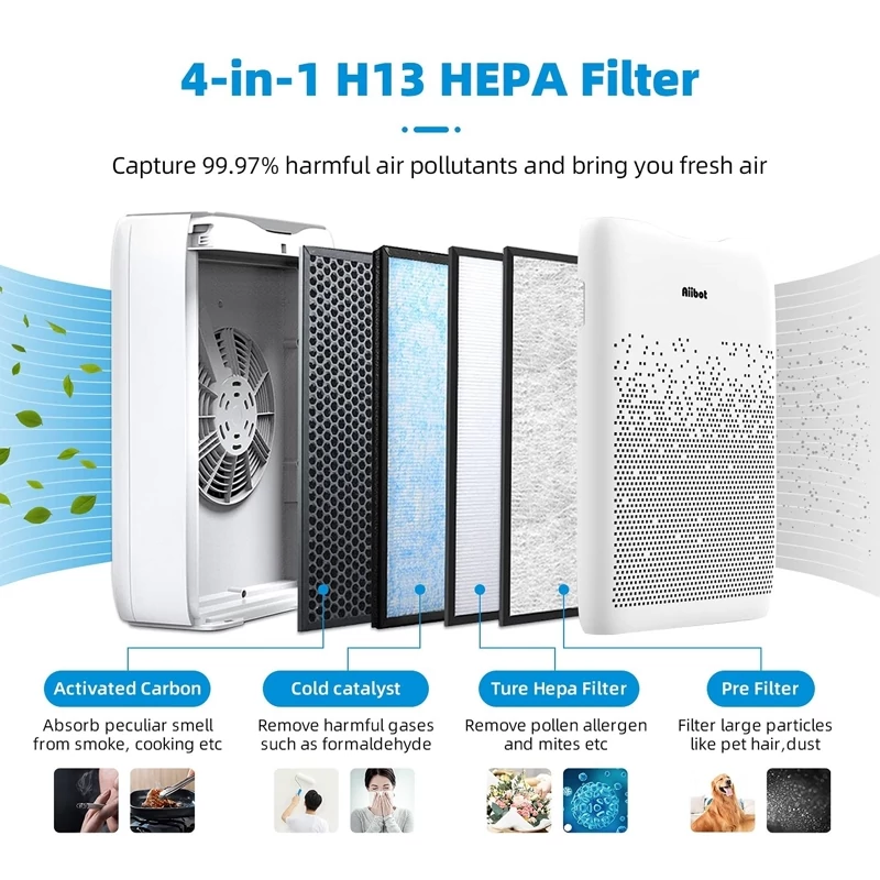 تصفیه کننده هوای Aiibot با فیلتر ترکیبی و ضدآلرژی