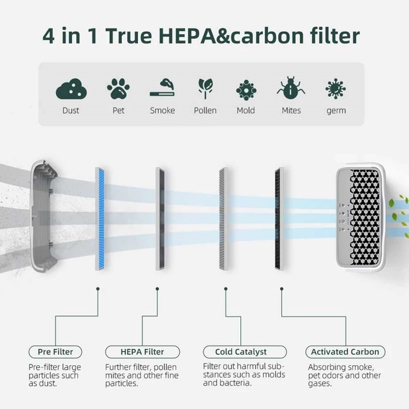 ✅️ فیلتر با اثرات متفاوت: (پیش فیلتر، فیلتر کربن فعال تصفیه کننده هوا، فیلتر HEPA واقعی H13 و مبدل کاتالیزوری سرد) است. این دستگاه 99.97٪ ذرات ریز مانند گرد و غبار، مایتهای گرد و غبار، گرده، کپک، موی حیوانات خانگی و آلرژنها و غیره را حذف میکند. فیلتر ضد آلرژی عمدتاً برای از بین بردن آلرژنهایی مانند گرد و غبار، شوره سر پوست، مایتهای گرد و غبار، گرده استفاده میشود. ایدهآل برای افراد مبتلا به آلرژی و صاحبان حیوانات خانگی.