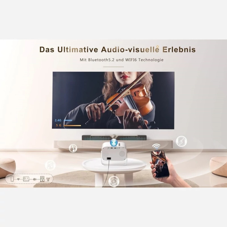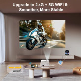 🏝 آخرین فناوری WiFi 6 و بلوتوث 5.2: پروژکتور از آخرین فناوری WiFi 6 استفاده می کند که سریع تر و پایدارتر است، با وای فای دوگانه 5G/2.4G سازگار است، سرعت انتقال تا حد زیادی بهبود یافته است. تراشه داخلی بلوتوث 5.2، میتوانید به سرعت با بلندگوها/هدفونهای بلوتوث متصل شوید، از تلفنهای همراه اندروید و اپل برای اجرای بازیها روی یک صفحه استفاده کنید، نرمتر، با تأخیر خداحافظی کنید، تجربه صدای فراگیر را به ارمغان بیاورید.