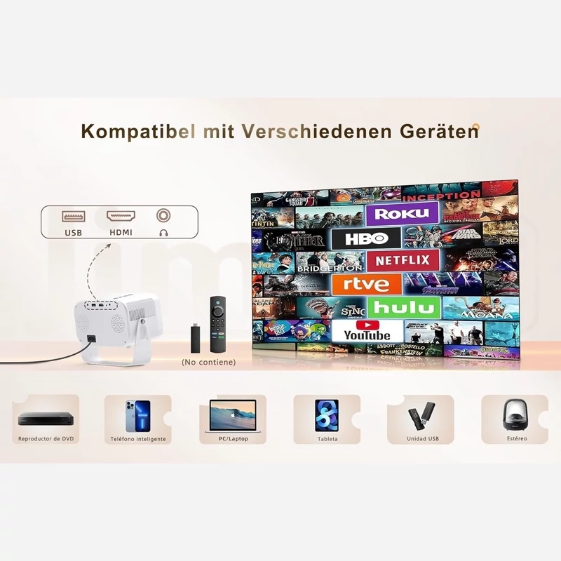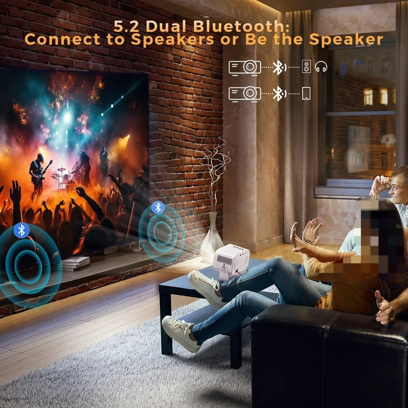 🏝 آخرین فناوری WiFi 6 و بلوتوث 5.2: پروژکتور از آخرین فناوری WiFi 6 استفاده می کند که سریع تر و پایدارتر است، با وای فای دوگانه 5G/2.4G سازگار است، سرعت انتقال تا حد زیادی بهبود یافته است. تراشه داخلی بلوتوث 5.2، میتوانید به سرعت با بلندگوها/هدفونهای بلوتوث متصل شوید، از تلفنهای همراه اندروید و اپل برای اجرای بازیها روی یک صفحه استفاده کنید، نرمتر، با تأخیر خداحافظی کنید، تجربه صدای فراگیر را به ارمغان بیاورید.