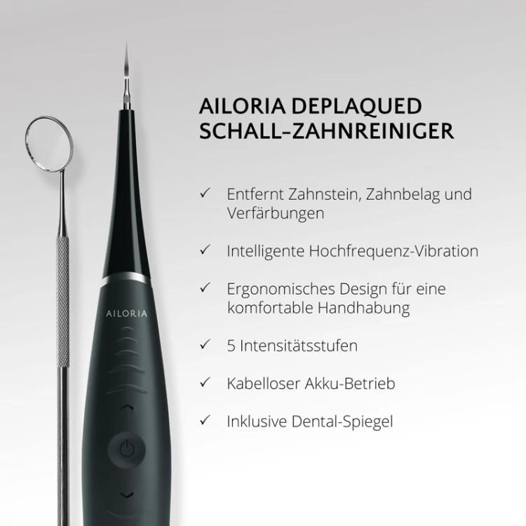 🦷 عملکرد تمیز کننده صوتی Deplaqued ترکیبی از حرکات صوتی و مکانیکی برای حذف پلاک و تغییر رنگ است. علاوه بر این، تمیز کننده سونیک دندان در برابر پاشیدن آب مطابق با کلاس حفاظتی IPX6 محافظت می شود. به لطف پنج سطح شدت، تمیز کننده سونیک دندان را می توان با نیازهای فردی تمیز کردن دندان تطبیق داد.