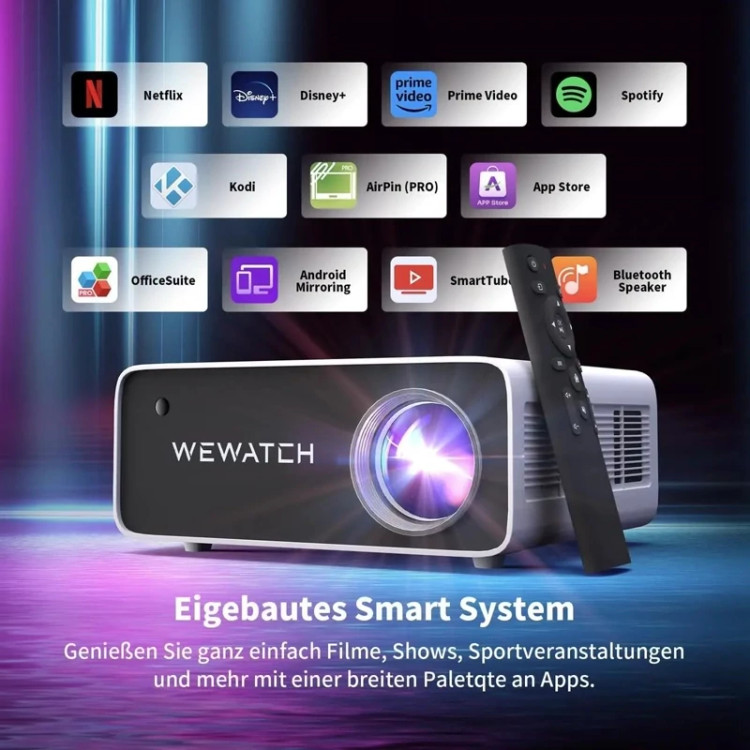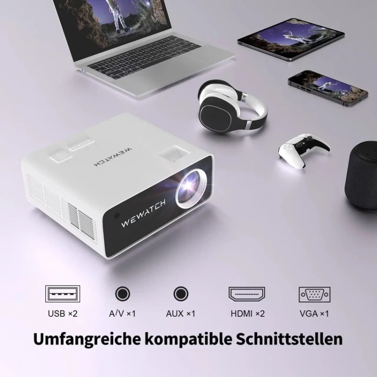 ویدیو پروژکتور هوشمند آندروید WEWATCH مدل V51 Pro تصویر 400 اینچ،