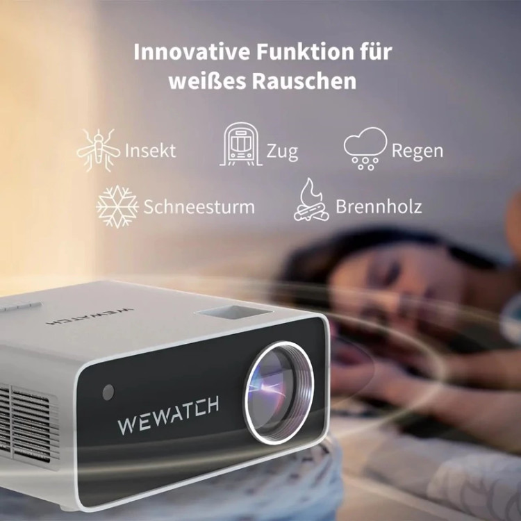 📺 【عملکرد نوآورانه نویز سفید】 پروژکتور V51 Pro 5G WiFi Bluetooth مجموعه ای از 5 صدای مختلف از پیش ضبط شده را ارائه می دهد که برای آرامش و خواب شما بهینه شده است. با اندازه جمع و جور و وزن سبک خود، قابل حمل تر از سایر پروژکتورهای داخلی 1080P 4K است.