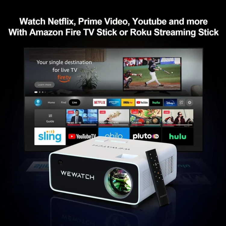 📺 【پروژکتور سینمای خانگی و پشتیبانی Native 1080P و 4K】 پروژکتور WEWATCH V51 PRO با سیستم تلویزیون هوشمند وضوح Full HD 1080P با پشتیبانی از 4K و نسبت کنتراست 20000:1 را برای تجربه سینمای معتبر در خانه ارائه میکند.