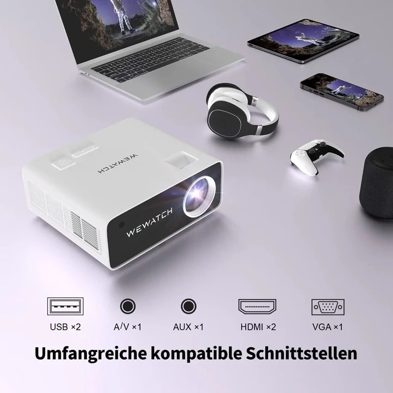📺 【پروژکتور سینمای خانگی و پشتیبانی Native 1080P و 4K】 پروژکتور WEWATCH V51 PRO با سیستم تلویزیون هوشمند وضوح Full HD 1080P با پشتیبانی از 4K و نسبت کنتراست 20000:1 را برای تجربه سینمای معتبر در خانه ارائه میکند.