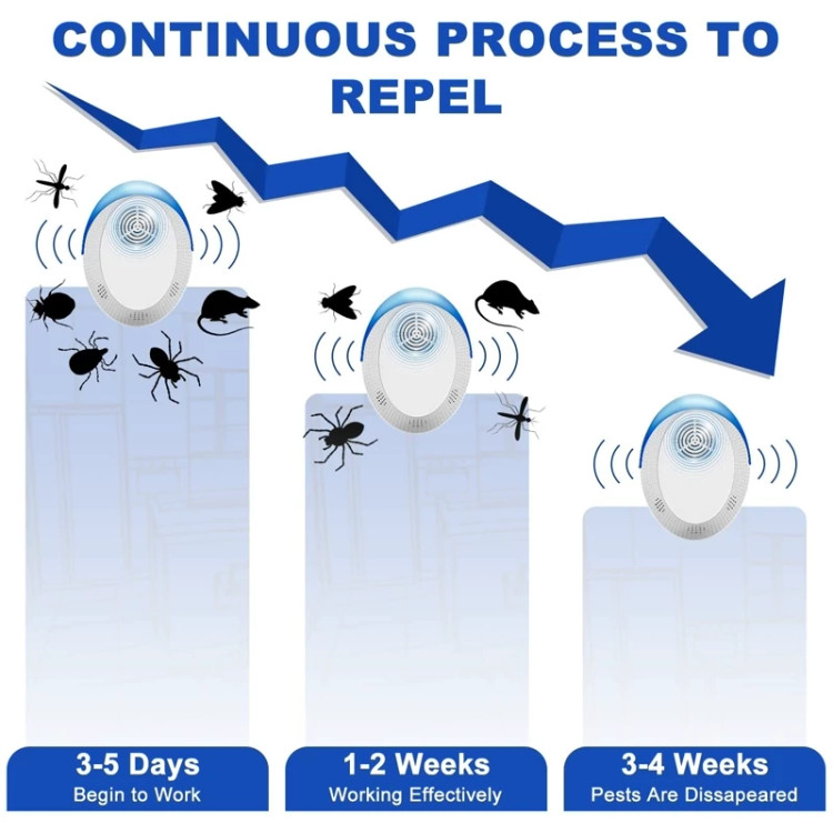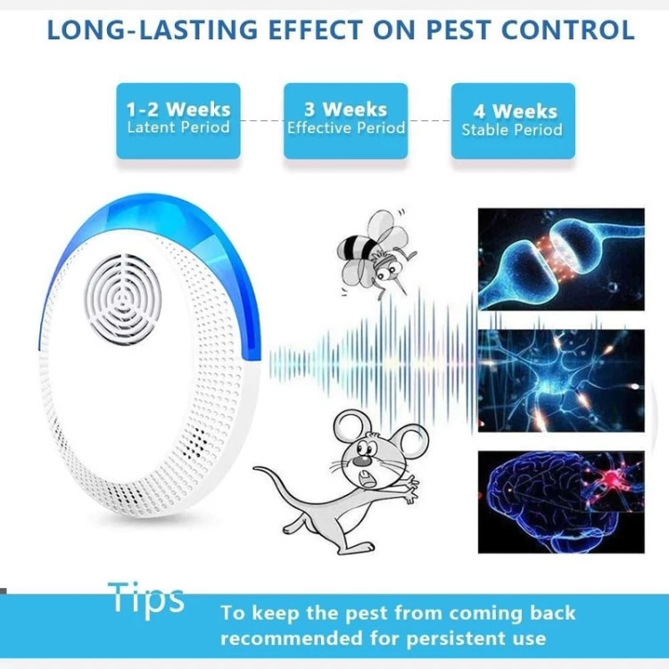 🐀 دفع آفات اولتراسونیک بهبودیافته: با اصل پیشرفته کنترل میکروکامپیوتر می توان 18 موج صوتی را با پالس های فرکانس متفاوت منتشر کرد. موج اولتراسونیک به طور مداوم در محدوده 22 کیلوهرتز تا 65 کیلوهرتز تغییر میکند، که موشها، عنکبوتها، مگسها، ککها، مورچهها و دیگر انواع سیستم عصبی حشرات را مختل میکند و باعث میشود آنها احساس ناراحتی کنند و از خانهها و زیستگاههایشان رانده شوند.