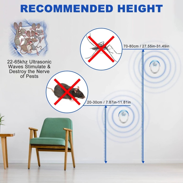 🪰 استفاده آسان: دافع ماوس نصب و استفاده آسان است. تنها کاری که باید انجام دهید این است که کنترل آفات را به سوکت 19 تا 59 اینچی دور از زمین وصل کنید . سپس می توان آن را به طور خودکار بدون فرآیند نصب پیچیده انجام داد.