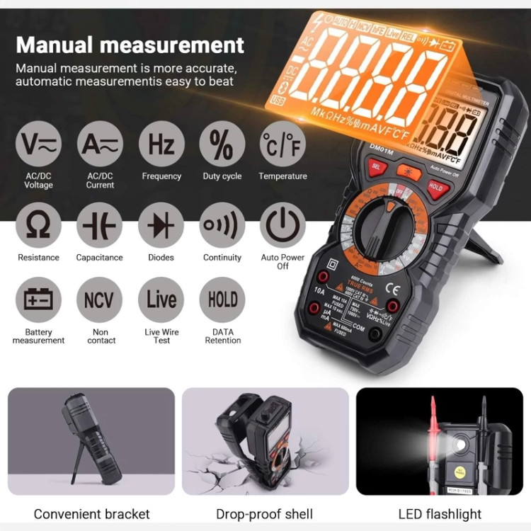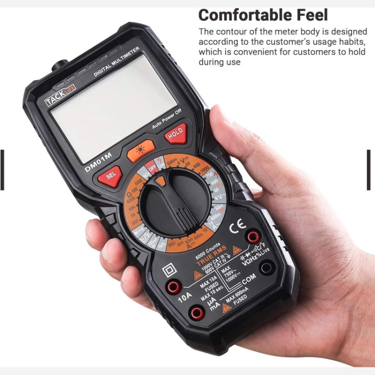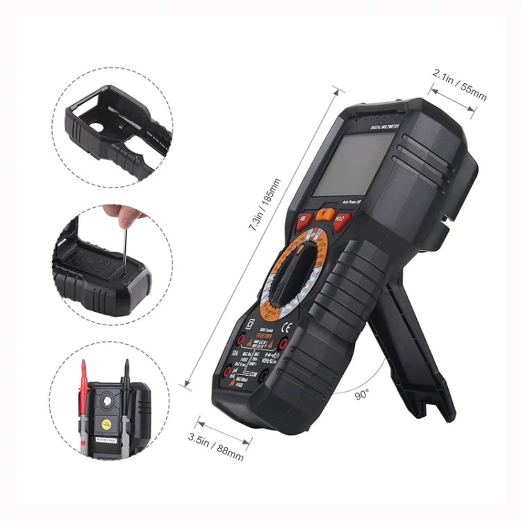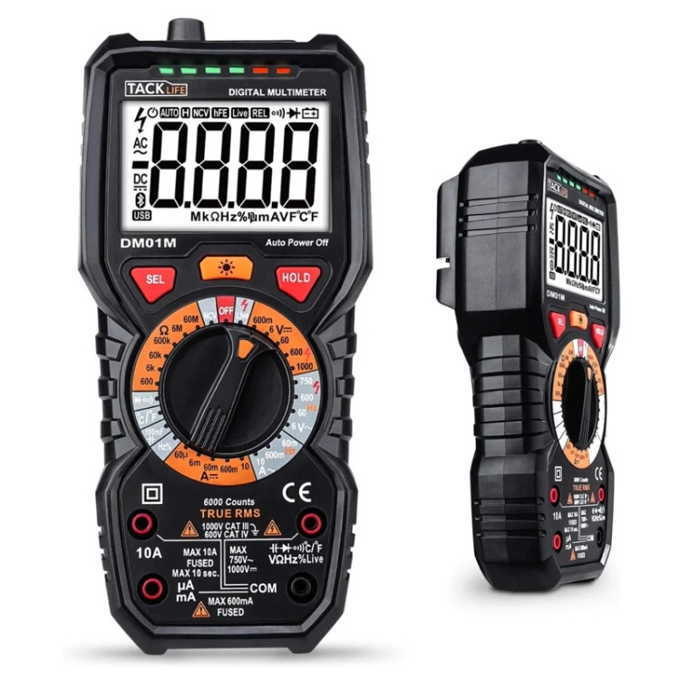 ✅️ پارامترهای اصلی - نمایش 6000 شمارش. مقدار واقعی. با این مولتیمتر، میتوانید تا 1000 ولت ولتاژ DC، تا 750 ولت ولتاژ AC، تا 10 آمپر جریان AC/DC، تا 60 مگا اهم مقاومت، تا 100 میلیفاراد خازن، 600 ولت CAT IV، 1000 ولت CAT III را اندازهگیری کنید. فیوز دوبل، 100٪ ایمن.