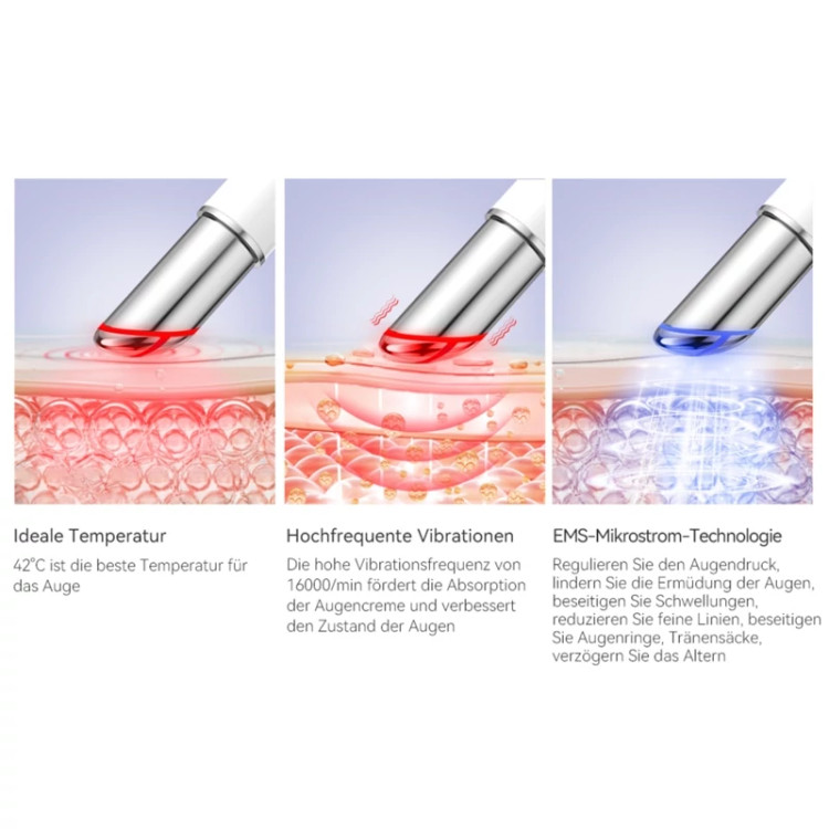 لرزش با فرکانس بالا: ماساژ ارتعاشی با فرکانس بالا 11500 (2000±) در دقیقه. لرزش باعث افزایش گردش خون در چشم می شود. این به کاهش ظاهر خستگی، رفع سیاهی و تورم کمک می کند.