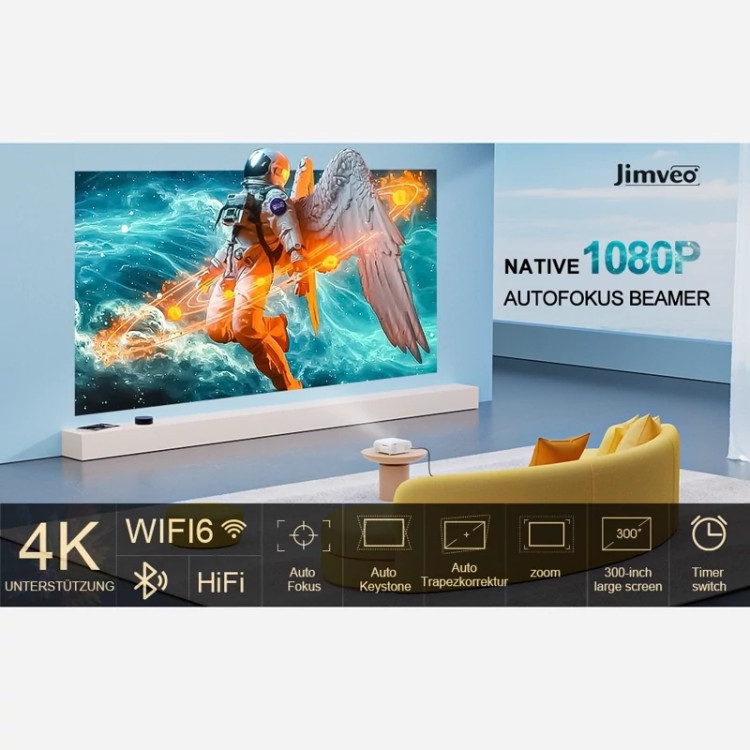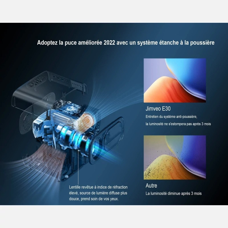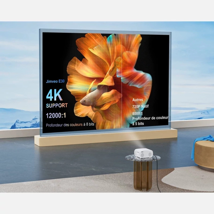 ویدیو پروژکتور 4K برند Jimveo مدل E30 فوکوس خودکار و درپوش لنز خودرو