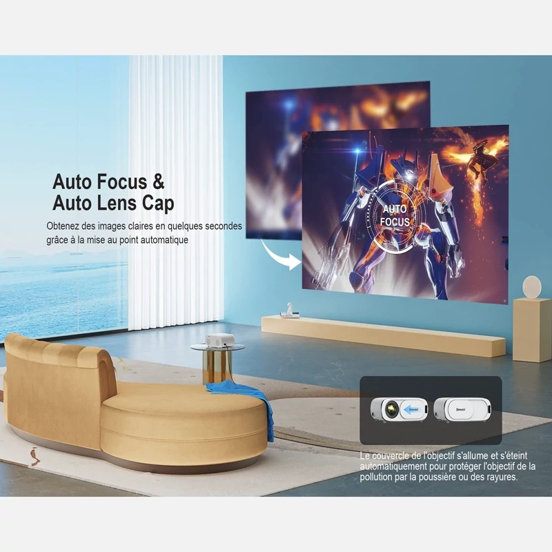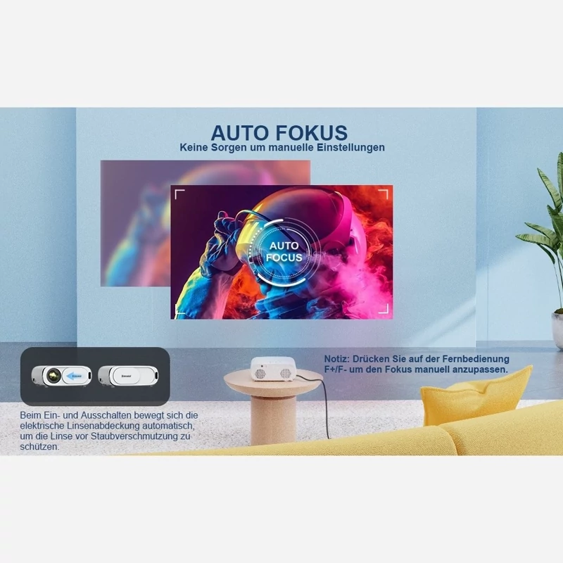 ✅️【پوشش خودکار لنز و پروژکتور فوکوس خودکار خلاقانه】پروژکتور E30 1080p تصاویر واضحی را در 5 ثانیه ارائه می دهد، فوکوس دستی آزاردهنده را حذف می کند و کار را ساده می کند. مجهز به سنسور تغییر خودکار، این پرتو می تواند حرکات را در زمان واقعی تشخیص دهد تا بهتر فوکوس کند و تصویر را واضح تر کند. طراحی روکش اتوماتیک لنز از لنز در برابر گرد و غبار و خط و خش محافظت می کند و راحتی و ایمنی را برای نصب سقفی فراهم می کند.