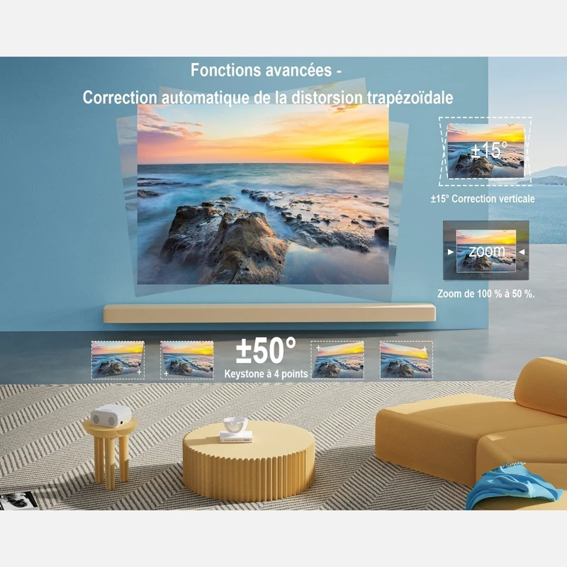 ✅️ پروژکتور 4K کیستون خودکار 6 بعدی و زوم 50 درصد: پروژکتور بلوتوث Full HD 1080P E30 در صورتی که از 30 درجه بیشتر نباشد، تصحیح خودکار 6 بعدی را ارائه می دهد. تصاویر مناسب را بدون زحمت مشخص می کند و اعوجاج ذوزنقه ای پیچیده دستی را حذف می کند. اصلاح 4 نقطه ای بر مرزهای اتاق غلبه می کند و انعطاف پذیری را برای پروژکتور به ارمغان می آورد.