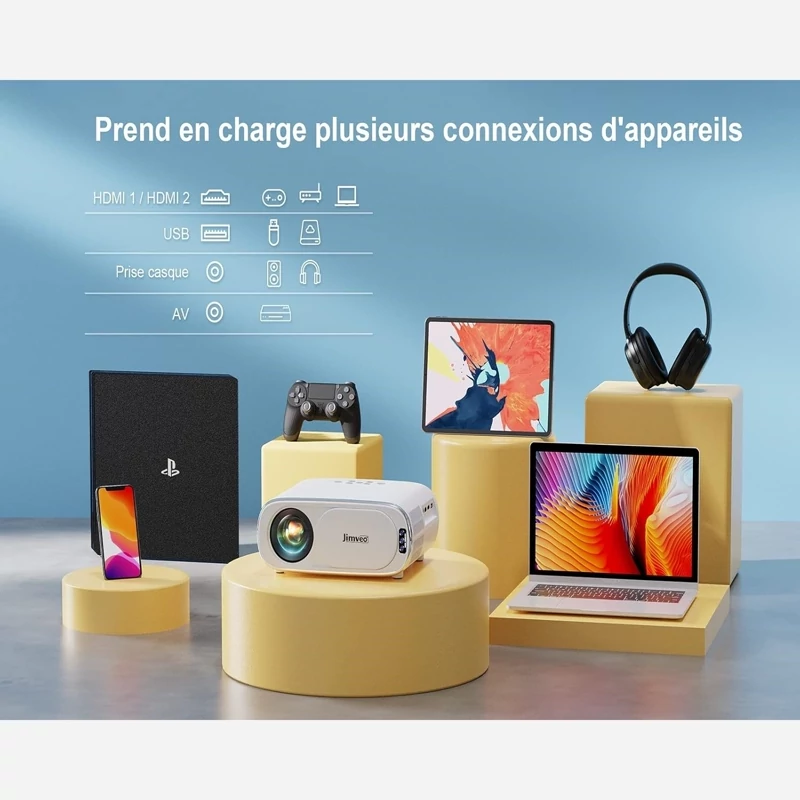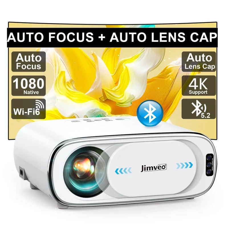 ویدیو پروژکتور 4K برند Jimveo مدل E30 فوکوس خودکار و درپوش لنز خودرو