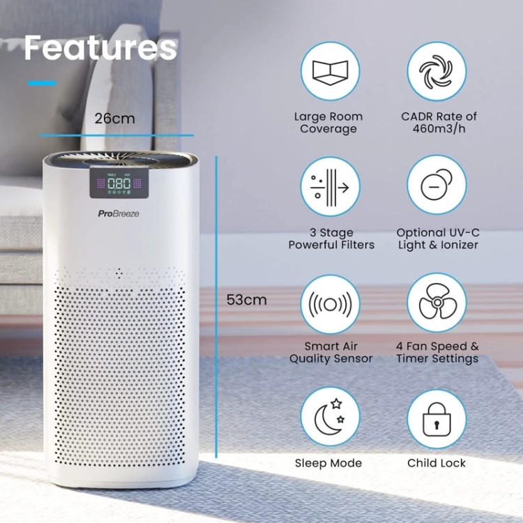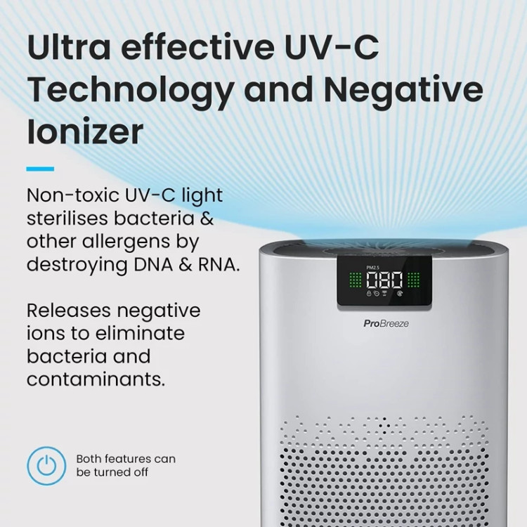 دستگاه تصفیه هوای فوق العاده قدرتمند Pro Breeze با نور پاک کننده UV، یونیزه کننده