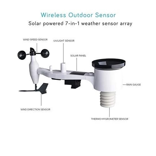 ☀️【آرایه سنسور فضای باز 7 در 1】: شامل بادنما، بادگیر، سنسور تابش UV/خورشیدی، سنسور دما-رطوبتسنج، سنسور باران، سطح حباب و جمعکننده خورشیدی است. هر 16 ثانیه بهروزرسانی میشود.