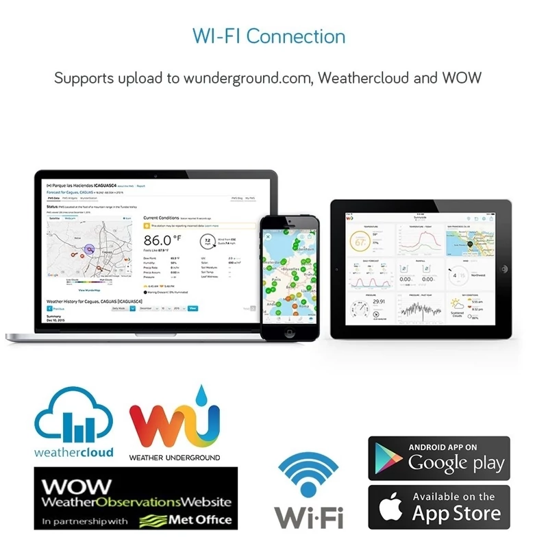 .☀️【سایر سرورهای آب و هوایی پشتیبانی شده】: پشتیبانی از آپلود دادههای حسگرهای فضای باز به آب و هوای زیرزمینی، weathercloud و WOW؛ شما را قادر میسازد سوابق تاریخی را از ایستگاه WU خود مشاهده کنید (دما، رطوبت، باد، باران در فضای باز).