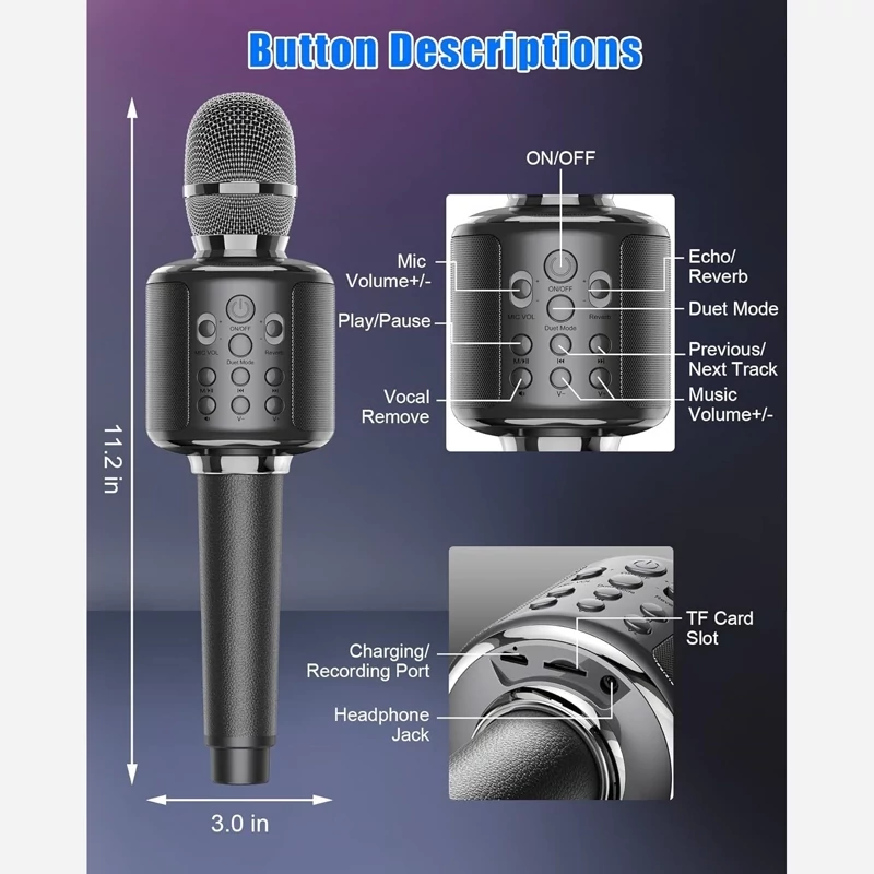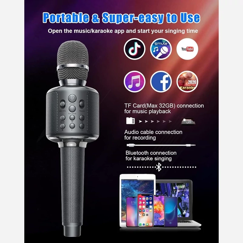 ✅️ هدیه ایده آل برای استعداد یابی کودکان و عاشقان میکروفون کارائوکه برای خوانندگان با مجموعه ای از سیستم کارائوکه حرفه ای، بی سیم چند منظوره GOODaaa ، قابل حمل، بلندگوی بلوتوث، پخش کننده موسیقی یا ضبط استفاده کرد. ✅️ بسیار آسان برای استفاده بدون نیاز به تجهیزات دیگر. سازگار با همه گوشی های هوشمند، می تواند خود را در یک اتاق KTV واقعی قرار دهد. قابل شارژ و قابل حمل باتری داخلی 3000 میلی آمپری قابل شارژ تا 10 ساعت زمان پخش مداوم یا زمان کارائوکه را فراهم می کند. یک کیف ذخیره سازی PU بادوام (با قلاب فلزی) همراه است که حمل یا نگهداری آن را آسان می کند. ✅️ دسته چرمی درجه یک و دسته چرمی با کیفیت صدای بالا، احساس چسبندگی عالی، نرم، ضد لغزش و مقاوم در برابر کثیفی را فراهم می کند. میکروفون GOODaaa Karaoke با دیافراگم 13 میلیمتری ممتاز داخلی، همراه با فناوری رندر HD، کیفیت صدای فوقالعادهای را با تریبل شفاف کریستالی تولید میکند. ✅️ استفاده بسیار آسان میکروفون کارائوکه را روشن کنید و آن را به دستگاه بلوتوث وصل کنید ، مناسب برای مهمانی های خانوادگی، فعالیت های در فضای باز، سرگرمی های اوقات فراغت، تمرین آواز خواندن. چه بزرگسال و چه کودک، همه می توانند شادی را با اعضای خانواده و دوستان شما به اشتراک بگذارند. ✅️ دستگاه کارائوکه چند منظوره 4 در 1 حذف آواز، عملکرد دوئت، افزودن طنین، تنظیم صدا (همراهی یا میکروفون)، پخش/مکث، آهنگ قبلی/ بعدی، ضبط، پخش کارت TF (حداکثر 32 گیگابایت) و غیره. با کیفیت بالا و همه کاره، از عملکرد قابل توجه آن شگفت زده خواهید شد.
