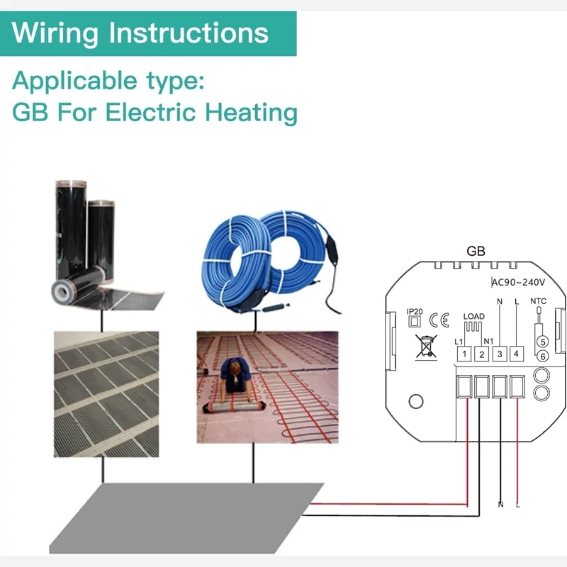 【تنظیم آسان】مناسب برای اکثر سیستمهای گرمایش الکتریکی با 95-240 ولت، 50/60 هرتز، حداکثر جریان 16 آمپر. امکان تنظیم کاملاً خودکار یا دستی؛ دستگاه خود را به صورت دستی کنترل کنید یا به وایفای متصل شوید و برنامههای گرمایش و دما را از طریق برنامه تلفن هوشمند تنظیم کنید.