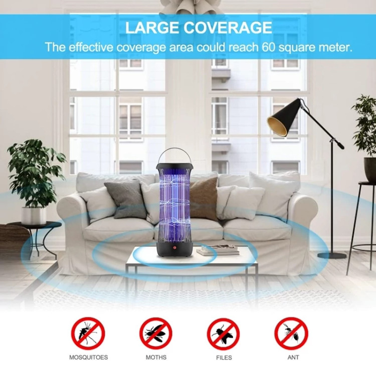 🪰 برد طولانی: با کنترل 360 درجه پشه، برد موثر می تواند به 60 متر مربع برسد. با قلاب بالای چراغ پشه می توانید به راحتی آن را در پاسیو آویزان کنید یا آن را روی یک سطح صاف مانند میز قرار دهید.