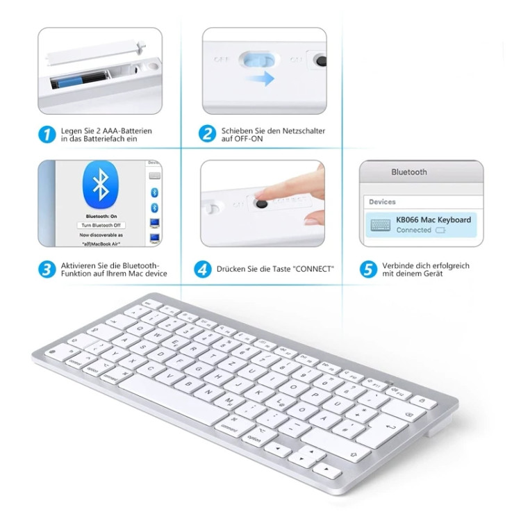 ✅️ صفحهکلید بلوتوث برای طرحبندی Mac: این صفحهکلید بلوتوث با Mac OS X 10.10 و نسخههای بالاتر بهترین عملکرد را دارد. به عنوان یک صفحه کلید بلوتوث، می توان آن را به طور یکپارچه برای دستگاه های مختلف مک مانند مک بوک، مک بوک پرو، مک بوک ایر، مک، آی مک، آی مک پرو، مک پرو/مینی و غیره استفاده کرد. ✅️ اتصال بلوتوث: این صفحه کلید ارگونومیک دارای اتصال قدرتمند بلوتوث 5.0 با برد تا 10 متر است. ✅️ صفحه کلید بلوتوث تایپ بی صدا: این صفحه کلید هوای مک بوک دارای مکانیزم سوئیچ قیچی برای بازخورد راحت هنگام تایپ، برای تایپ بی صدا و کار موثر است. ✅️ کلیدهای میانبر انحصاری: این صفحه کلید بلوتوث توالی حرکت شما را بهینه می کند و در نتیجه به کارایی و بهره وری کمک می کند. 12 دکمه میانبر به شما امکان می دهد سریعتر کار کنید. ✅️ صفحه کلید بی سیم با باتری: این صفحه کلید نوآورانه تنها با 2 باتری قلمی تغذیه می شود. دارای حالت خواب خودکار صرفه جویی در انرژی است که پس از 10 دقیقه عدم فعالیت شروع می شود. روی هر کلیدی کلیک کنید تا صفحه کلید بیدار شود. باتری ها شامل نمی شوند.